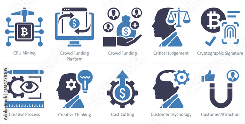 A set of 10 mix icons as cpu mining, crowdfunding platform, crowdfunding