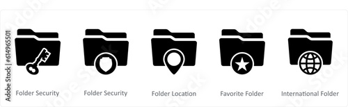 A set of 5 Document icons as folder security, folder location, favorite folder