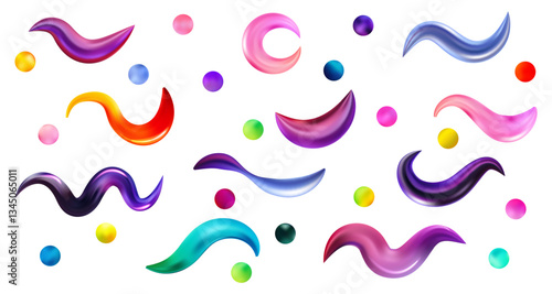 A set of bright colorful gradient elements, colorful brushes, a gradient grid on a white background. Holiday decoration elements for a poster, banner, or design project. Vector illustration