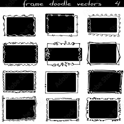 A set of decorative silhouette doodle frames.A collection of black and white rectangular frames. Ornaments, strokes, curls and lines. Making gifts, packaging. Creating a mask in digital design.