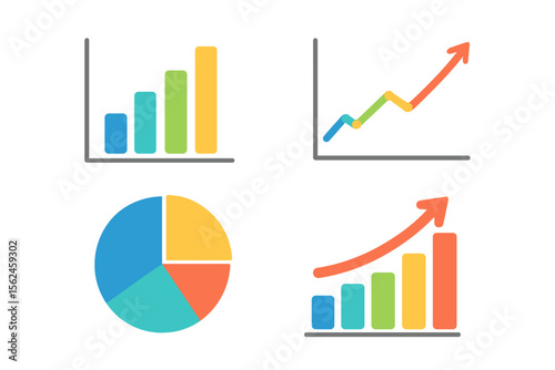 A set of infographic charts illustrating colorful statistics or economic concepts, suitable for business presentation slide templates