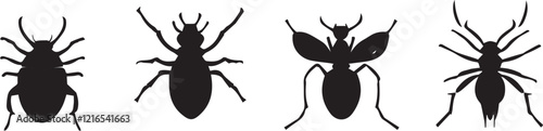A set of insects silhouettes for flat design. Hand drawn vector illustration
