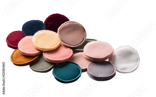 A set of reusable makeup remover pads with a cotton pouch on a empty plain background