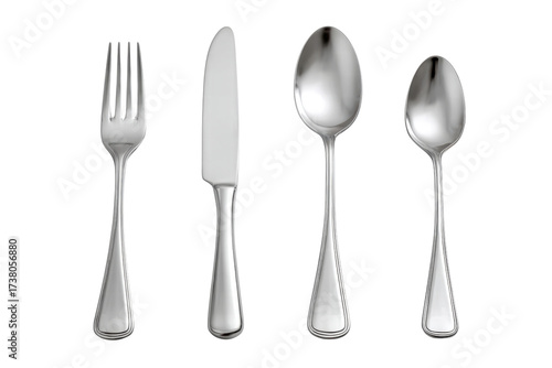 A set of silverware including a knife, fork, and spoon. The silverware is arranged in a neat and orderly manner, with the knife and spoon placed next to each other and the fork on the left side, png