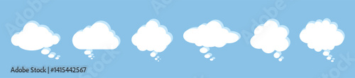 A set of six speech bubbles with a shadow on a blue background. White clouds. Vector illustration.