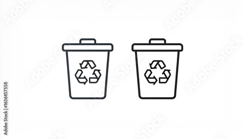 A set of two minimalist recycling bin icons with lids. Outline illustration representing waste management, environmental conservation, and sustainability.