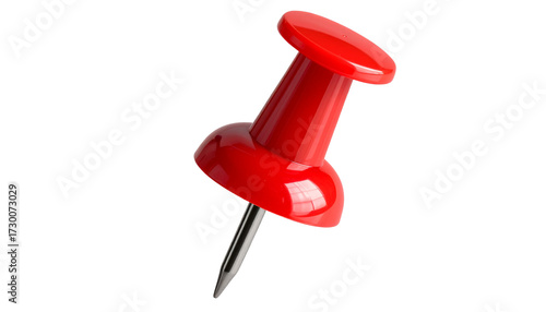 A sharp, red plastic push pin is isolated on a white board background, ready to attach a memo or note