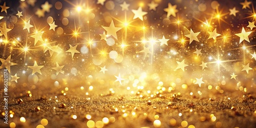 A shimmering celebration of golden stardust and celestial wonders with a dazzling display of twinkling lights and glittering stars.