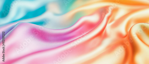 A shimmering, metallic look background with vibrant silk waves blending hues of pink, orange, and blue fills the space for artistic expression