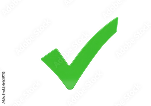 A shiny 3d green checkmark isolated on a transparent background representing success approval and completion
