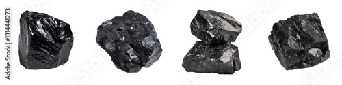 A shiny aluminum ore rock specimen featuring its natural reflective surface and solid texture is perfect for geological study and mineral collection purposes, isolated on a transparent background as