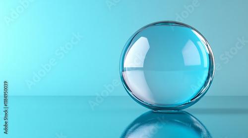 A shiny glass orb on a blank surface, reflecting distorted light, symbolizing perspective and chaos, with empty caption space on the side, inviting contemplation