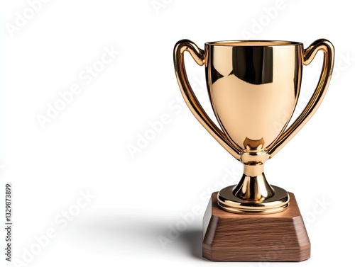 A shiny gold trophy with handles, resting on a wooden base, symbolizing achievement and success.