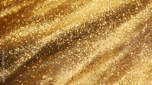 A shiny, shimmering golden satin fabric with subtle glitter accents.