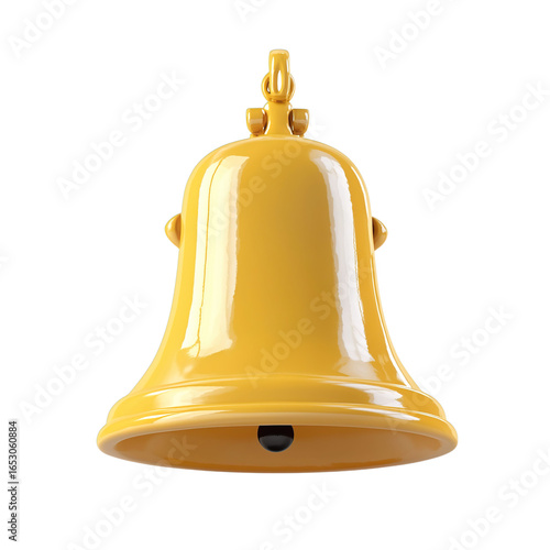A shiny yellow bell with a sleek, polished finish, reflecting light beautifully in a simple, minimalistic style., transparent png