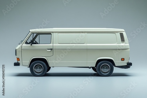 A side view of a classic van, showcasing its simple design and vintage style.