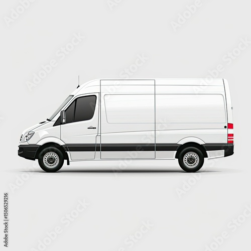 A side view of a white delivery van, commonly used for transport and logistics. on white background