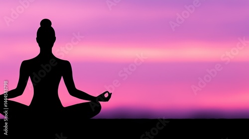 A silhouette figure meditating in the lotus position at sunrise