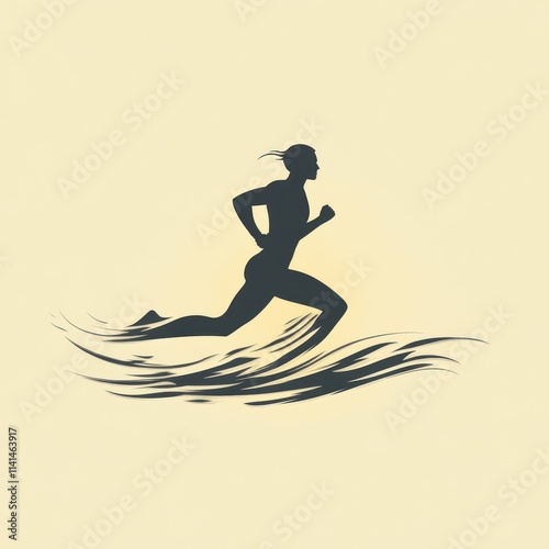 A silhouette of a woman running, with dynamic waves suggesting movement and energy.