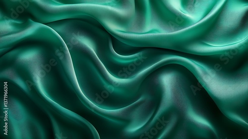 A silky texture in shades of deep forest green and soft mint, with intricate patterns of light and shadow that create a natural, calming effect,