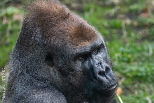 A Silverback Gorilla (Gorilla beringei beringei) Looking at the camera.