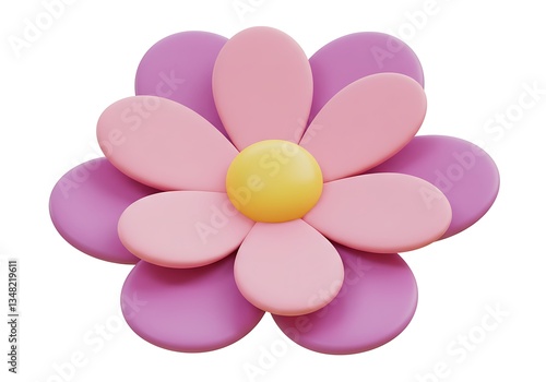 A simple 3D model of a blooming flower with colorful petals, set against a plain white background.