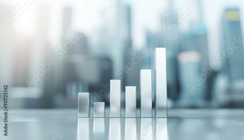 A simple 3D of a bar chart with varying heights, representing stock market performance, placed on a smooth surface