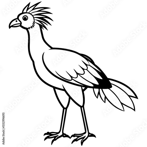 a simple black and white illustration of a seriema bird in a standing pose vector illustration