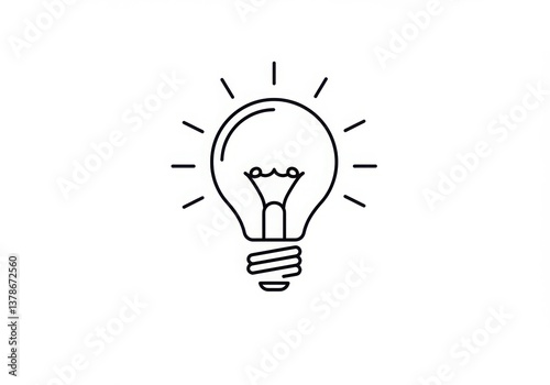 A simple black and white line drawing of a lightbulb on a white background in the center of frame