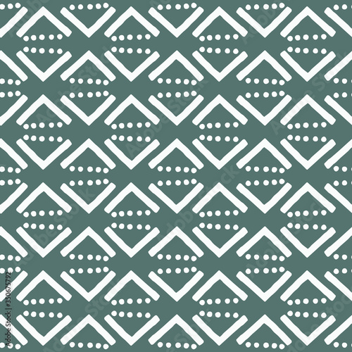 A simple black and white pattern of triangles and dots. Hand illustration. Scandinavian style, design for wallpaper, fabric, textile
