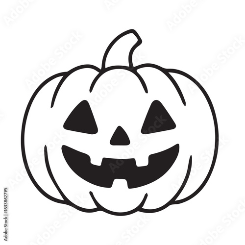 A simple black and white vector illustration of a Halloween pumpkin, outlined in thick black lines to highlight its classic festive shape.