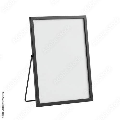 A simple black frame is propped open, displaying a blank white center