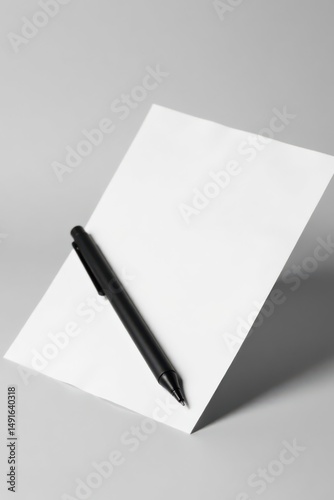 A Simple Black Pen Resting on a Blank Sheet of Paper, Ready for Your Ideas and Notes