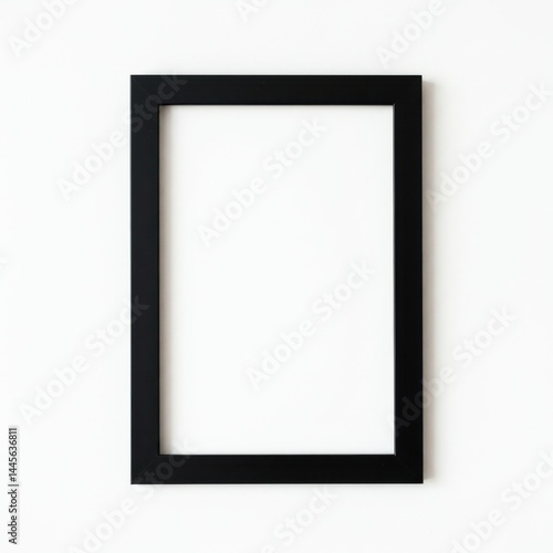 A simple black picture frame hanging on a white wall creating a minimalist and modern aesthetic look