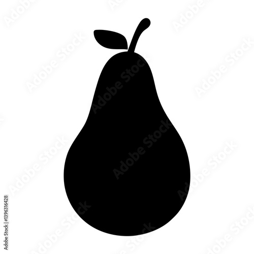 A Simple Black Silhouette of a Pear Fruit with a Leaf