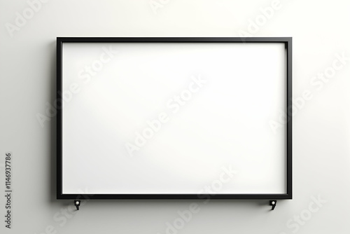 A simple black-framed empty whiteboard mounted on a wall, ready for use.
