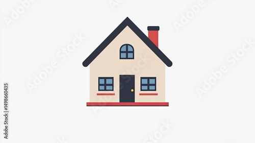 A simple cartoon house with a black roof and chimney on a white background in a minimalist style