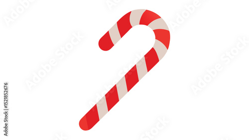 A simple christmas candy cane with red and white stripes on a white background