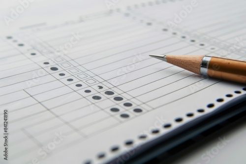 A simple desk scene with a pencil sitting on top of a sheet of paper, ready for writing or drawing
