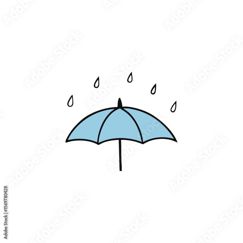 A simple drawing of a light blue umbrella with raindrops