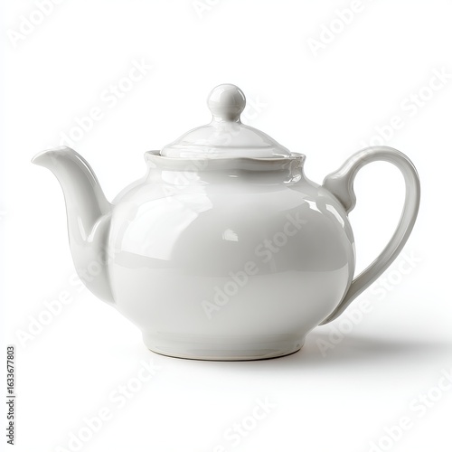 A simple, elegant white teapot, perfect for brewing a warm, comforting beverage. The teapot is pristine and gleaming, with a classic design.