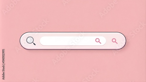 A simple, minimalist search bar design on a soft pink background, emphasizing digital search and online exploration.