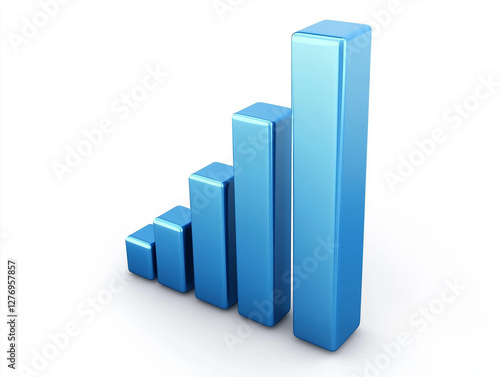 A simple, minimalistic illustration of a bar graph going up, in light blue on a white background, business graph with arrow