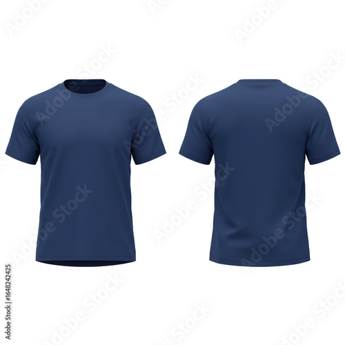 A simple navy blue t-shirt mockup showcasing the front and back views perfect for apparel design and product presentations.