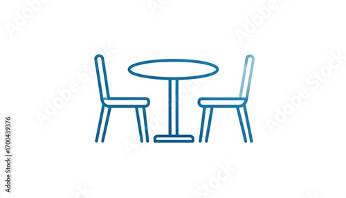 A simple, outlined illustration depicts a table and two chairs, suitable for a cafe or restaurant.