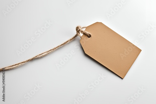 A simple price tag with a string, viewed from the top, against a plain white background.