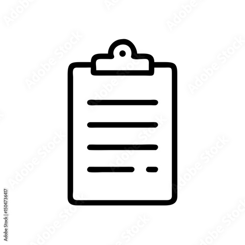 A simple representation of a clipboard with lines suggesting a document on a white background space shown
