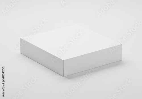 A simple studio shot of a small square white box on a white surface with soft lighting effect