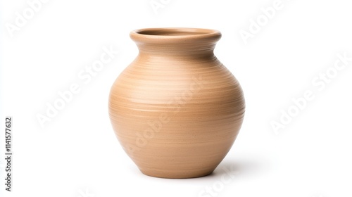 A simple, unglazed clay pot with a round body and narrow neck, showcasing natural earthy tones and a smooth surface.