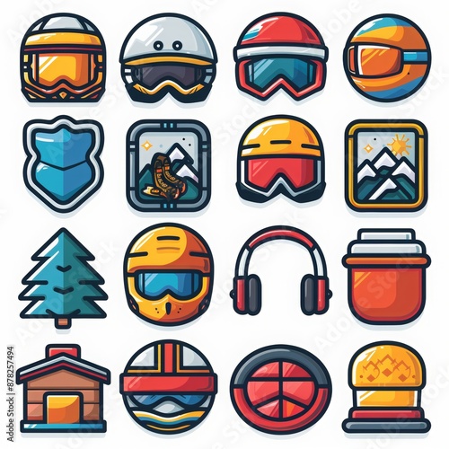 A simple vector icon illustration depicting the group of winter sports items at center for a website isolated white background